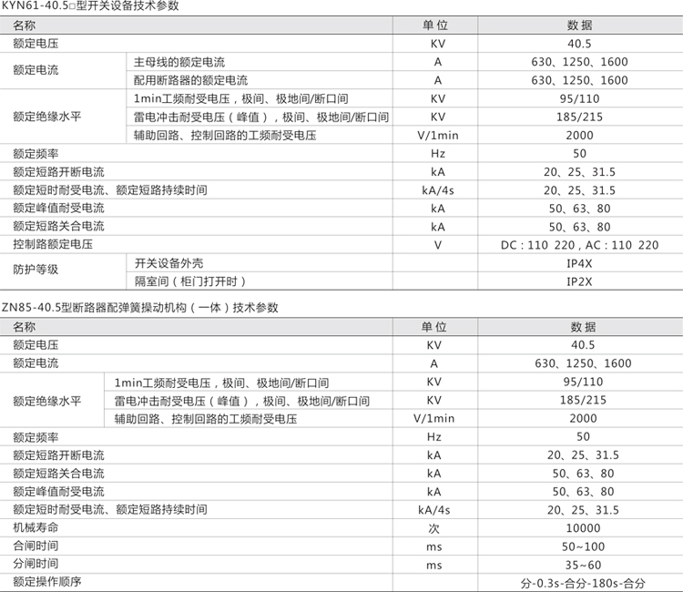 KYN61-40.5□ 型鎧裝移開式交流金屬封閉開關(guān)設(shè)備 (以下簡稱“開關(guān)設(shè)備”) 其主要特點是柜內(nèi)配用 ZN85-40.5 型全絕緣真空斷路器及彈簧操動機構(gòu),也可配用ABB的VD4-40.5和HD4-40.5柜體采用敷鋁鋅板和冷軋鋼板噴塑組裝而成,提高了手車與柜體的配合精度,手車推進(jìn)拉出十分輕便,互換性強。外形美觀、方案齊全、使用安全可靠。