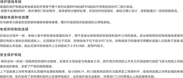 1.抽出式MCC柜內分成三個隔室,即柜后水平母線隔室,柜前部左邊的功能單元隔室,柜前部右邊的電纜隔室。水平母線隔室與功能單元隔室之間用阻燃型發(fā)泡塑料制造的功能板分隔,電纜隔室與水平母線隔室、功能單元隔室之間用鋼板分離。